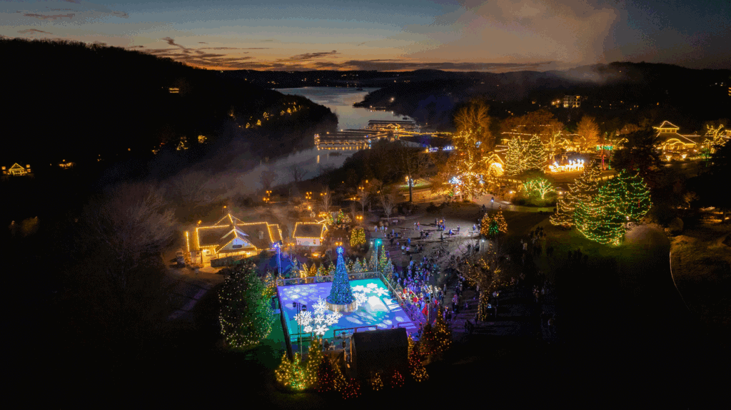In early November, the 4,600-acre rustic luxury resort unveils its annual transformation into a breathtaking Winter Wonderland. More than 4 million lights blanket the property, woven through towering pines, draped across historic buildings, synchronized in animated displays, and reflected in the still waters of Table Rock Lake.